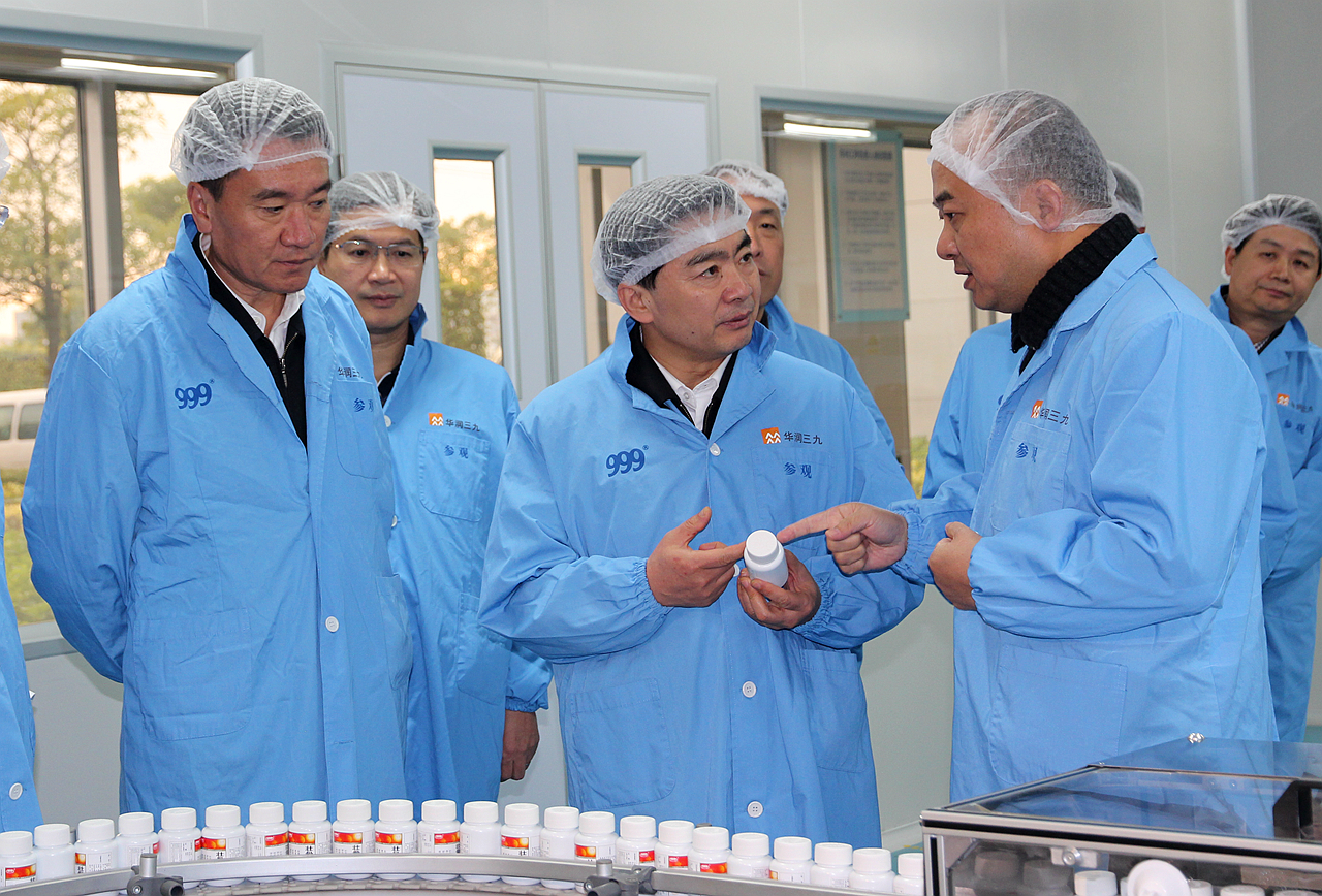 王榮書記隨后來到觀瀾基地車間參觀,深入生產(chǎn)一線了解藥品的生產(chǎn)工藝、流程及質(zhì)量控制等情況。參觀過程中,王榮書記與宋清總裁邊走邊聊。看到生產(chǎn)線上出來的一盒盒藥品,王榮書記問了很多關(guān)于藥品的專業(yè)問題,“這是單味藥還是多味藥?”、“產(chǎn)品質(zhì)量堅持實施嚴格的標準和控制流程嗎?”、“產(chǎn)品的原料產(chǎn)地在哪里,質(zhì)量控制嚴格規(guī)范嗎,自己建設(shè)了多少原料基地嗎?”宋清總裁分別作了解答,并介紹了華潤三九的理念和價值觀,倡導(dǎo)“關(guān)愛、責(zé)任、卓越”,關(guān)愛大眾健康,履行社會責(zé)任,追求卓越績效,專注藥品制造,打造信賴品牌。王榮書記表示贊許。