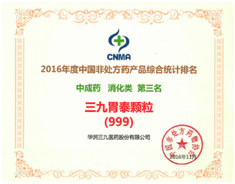 在產(chǎn)品品牌統(tǒng)計(jì)排名中,華潤三九感冒‘’靈顆粒/膠囊自2009年以來連續(xù)七年獲得中成藥類感冒咳嗽類產(chǎn)品排名第一名,復(fù)方醋酸地塞米松乳膏(999皮炎平)榮獲化學(xué)藥類皮膚外用藥類第一名,三九胃泰榮獲中成藥類消化類藥物第三名,強(qiáng)力枇杷露榮獲中成藥類止咳化痰平喘類藥物第三名的好成績。多年來,華潤三九持續(xù)蟬聯(lián)行業(yè)企業(yè)排行榜首位,多個(gè)產(chǎn)品連續(xù)位居排行榜前茅,一方面顯示了企業(yè)在非處方藥物領(lǐng)域的領(lǐng)導(dǎo)地位,另一方面提升了公司產(chǎn)品在消費(fèi)者心中的地位,使消費(fèi)者更加信賴華潤三九的有關(guān)產(chǎn)品。