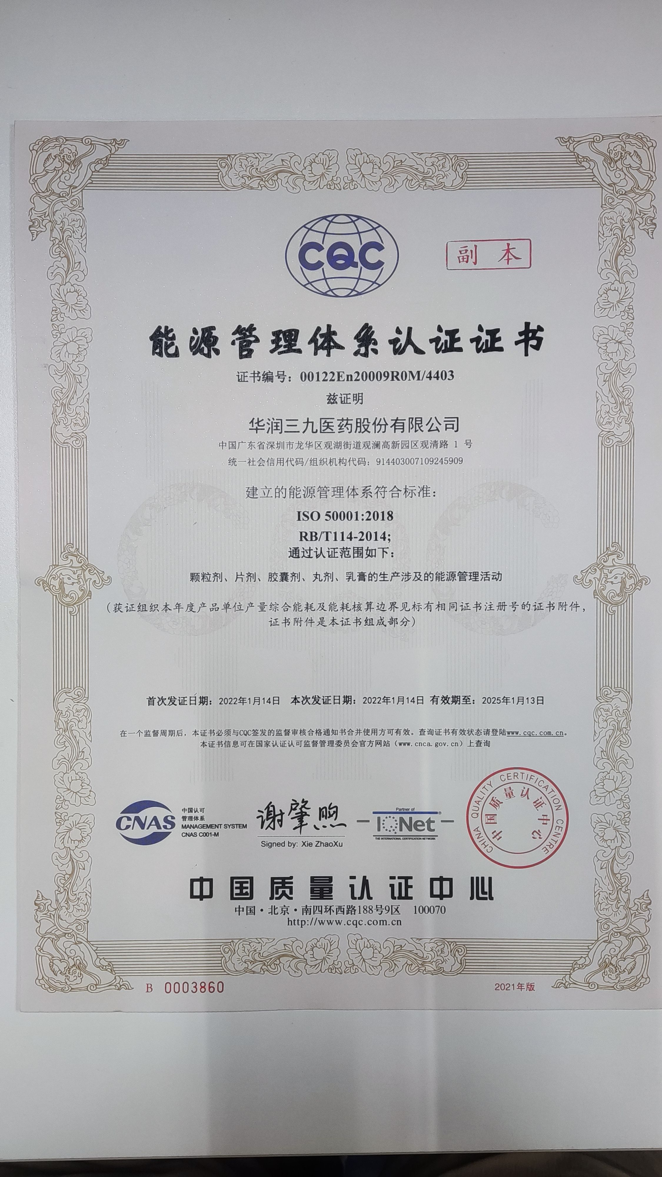 華潤三九觀瀾基地通過ISO50001能源管理體系認證,近日收到認證證書。目前,觀瀾基地能源管理體系建設(shè)、生產(chǎn)節(jié)能管理在科學化、規(guī)范化、標準化等方面取得了顯著成效,力促碳達峰和碳中和“雙碳目標”的達成。