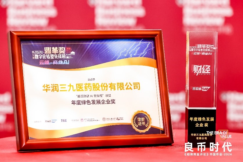 華潤(rùn)三九榮獲“鼎革獎(jiǎng)”數(shù)字化轉(zhuǎn)型先鋒榜-年度綠色發(fā)展企業(yè)獎(jiǎng)
