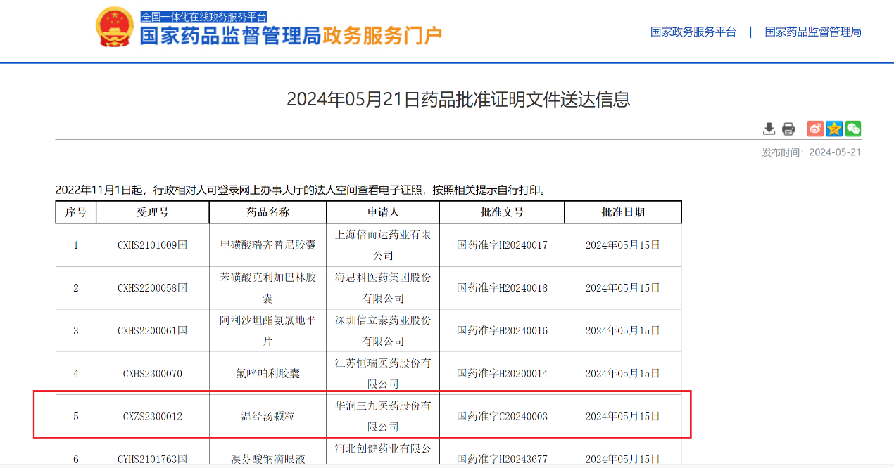 了解更多>>>華潤(rùn)三九又一首經(jīng)典名方“溫經(jīng)湯顆粒”獲批上市