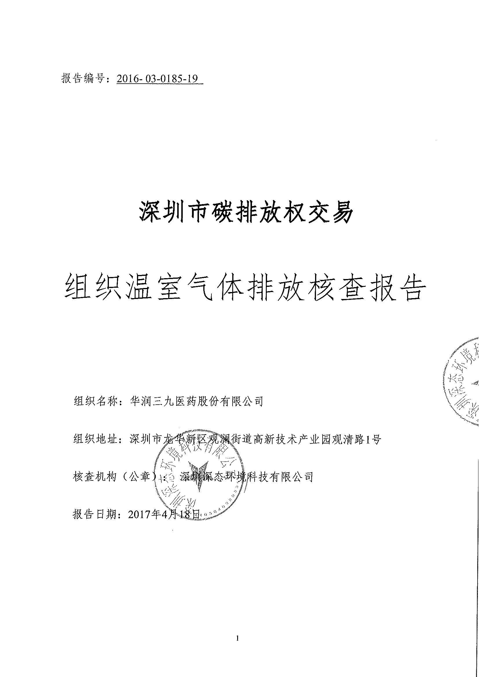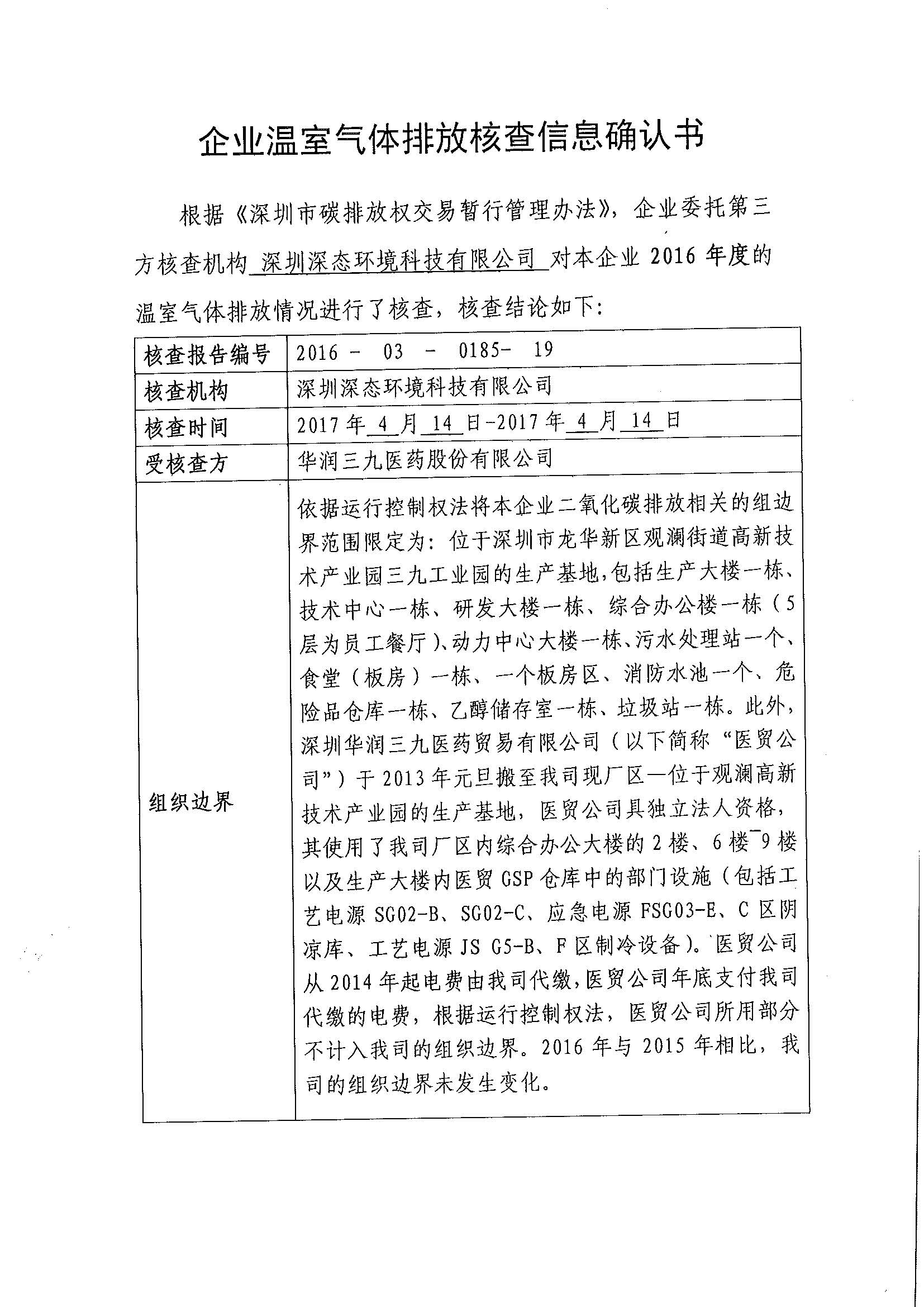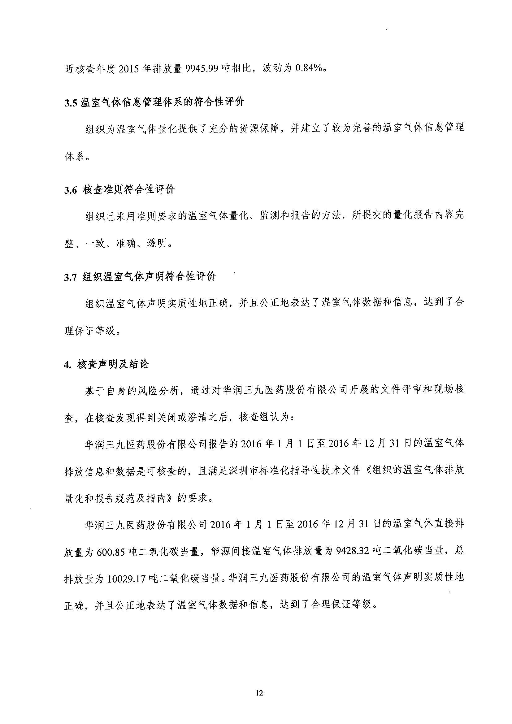 2016年度華潤(rùn)三九溫室氣體排放核查報(bào)告