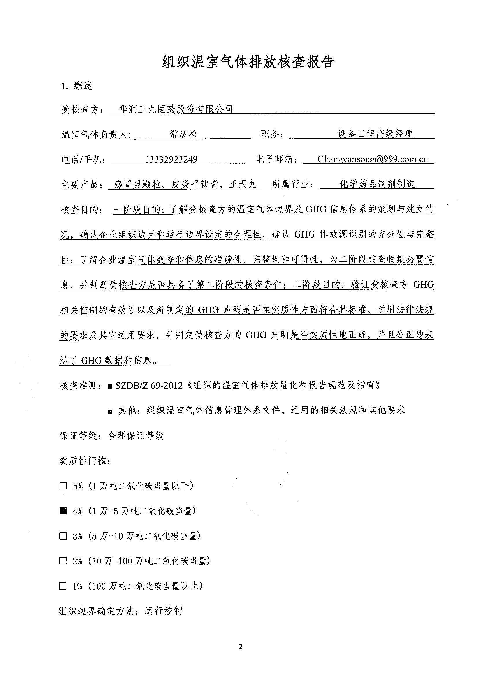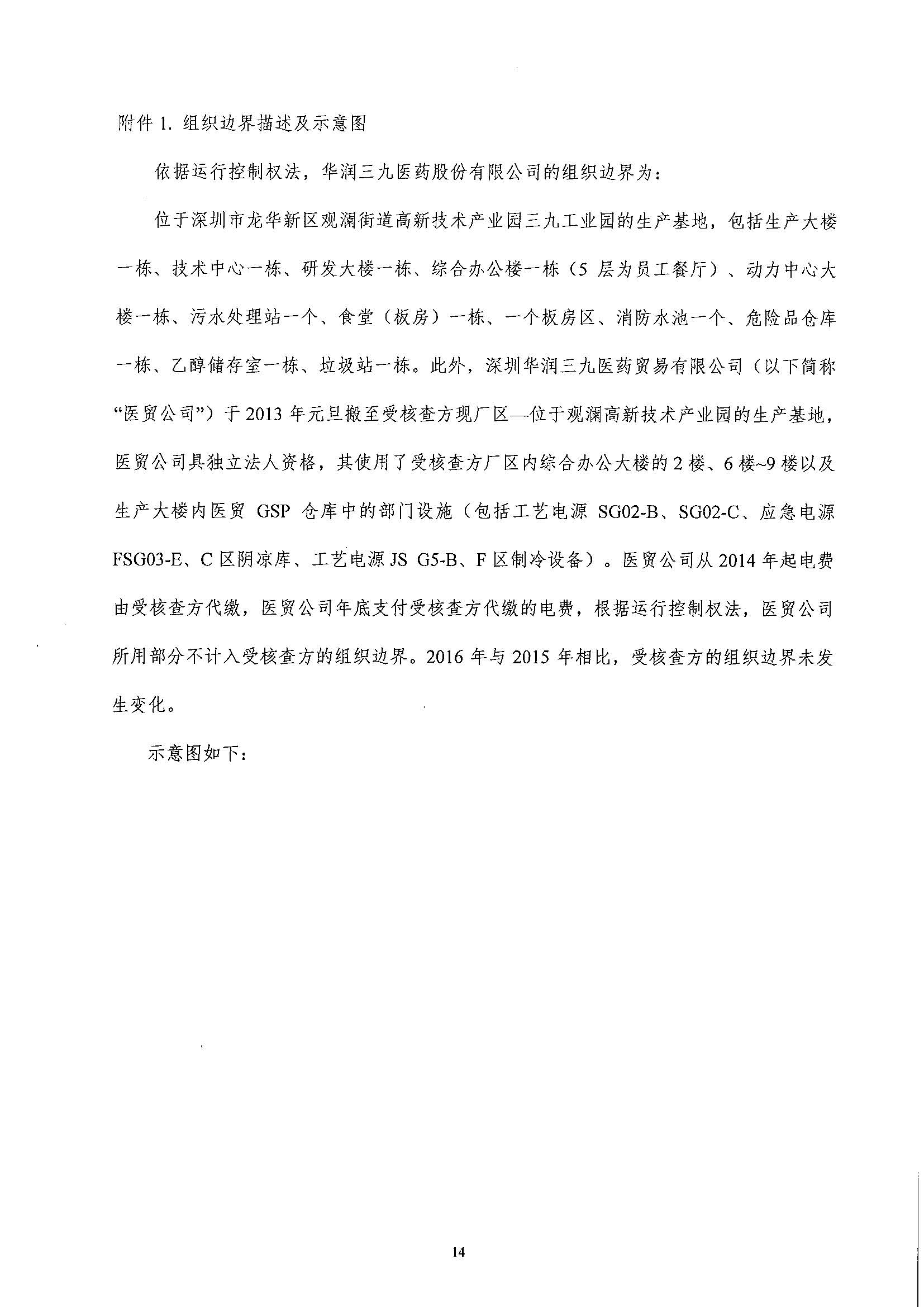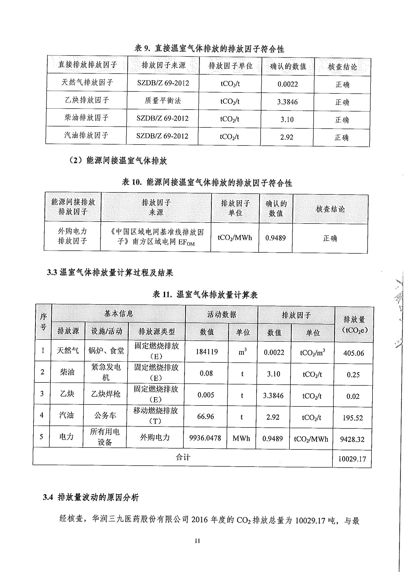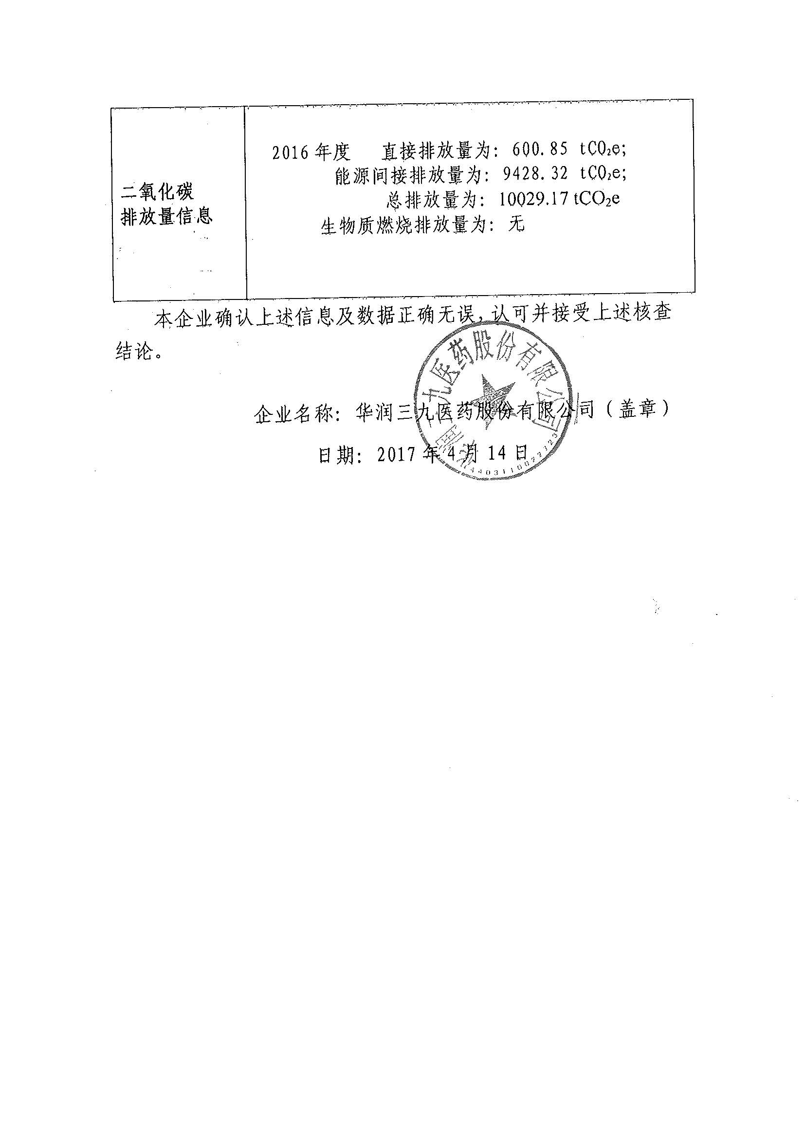 2016年度華潤(rùn)三九溫室氣體排放核查報(bào)告
