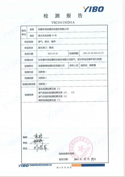 華潤(rùn)金蟾污染物排放檢測(cè)報(bào)告(2021年一季度)