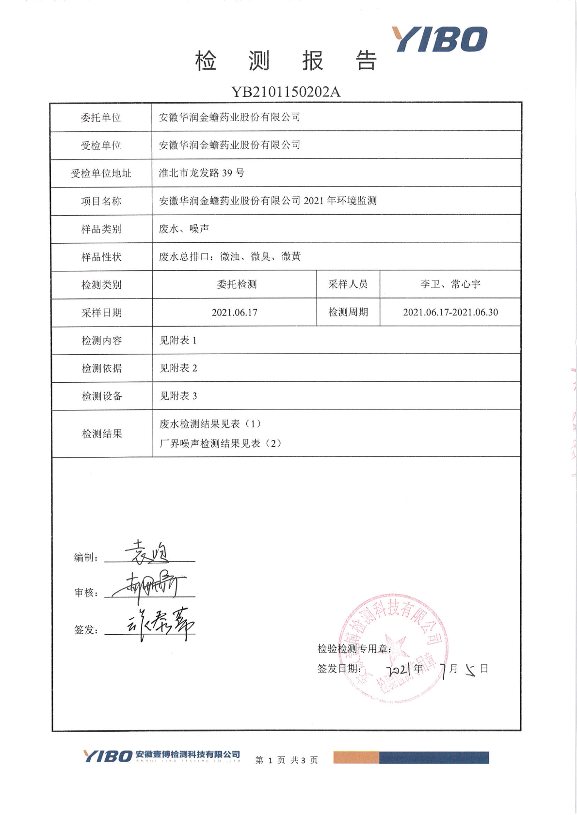 華潤(rùn)金蟾污染物排放檢測(cè)報(bào)告(2021年二季度)