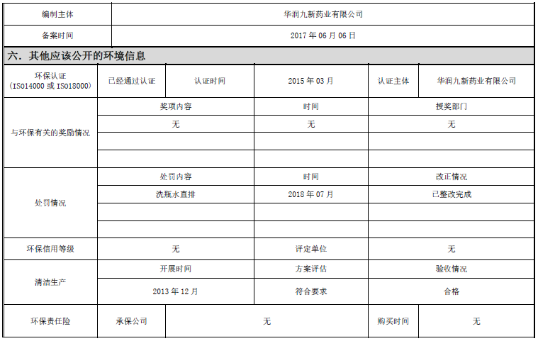 為了體現(xiàn)公開、公正和民主監(jiān)督的原則,深圳華潤九新藥業(yè)有限公司現(xiàn)將廢氣處理設施建設項目竣工環(huán)境保護自主驗收的相關內(nèi)容予以公示,公示文件包括:驗收監(jiān)測報告表和竣工環(huán)境保護驗收意見。