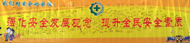 “安全生產(chǎn)月”動員會上,主管以上管理人員在承諾橫幅上簽名。