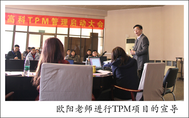 會議由公司生產(chǎn)總監(jiān)主持。會議的召開標志著公司全面推行TPM工作。會議公布了TPM領(lǐng)導小組及實施小組組織架構(gòu)。推進TPM管理,旨在通過消滅生產(chǎn)的災害、事故、故障和其它浪費,并追求設(shè)備的安全、連續(xù)、穩(wěn)定,營造整潔的工作環(huán)境,打造設(shè)備標準化管理體系,提高員工綜合素質(zhì),提高生產(chǎn)綜合效率,提升現(xiàn)場管理水平,提升企業(yè)競爭力。