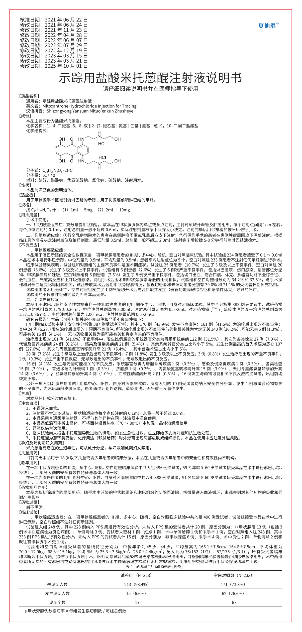 示蹤用鹽酸米托蒽醌注射液說明書(1ml_5mg_2ml_10mg)_2