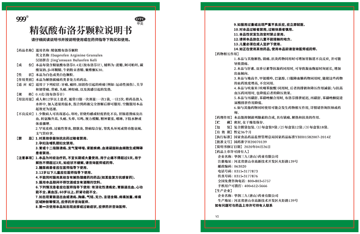 精氨酸布洛芬顆粒說(shuō)明書(shū)(9袋、12袋、18袋)v3