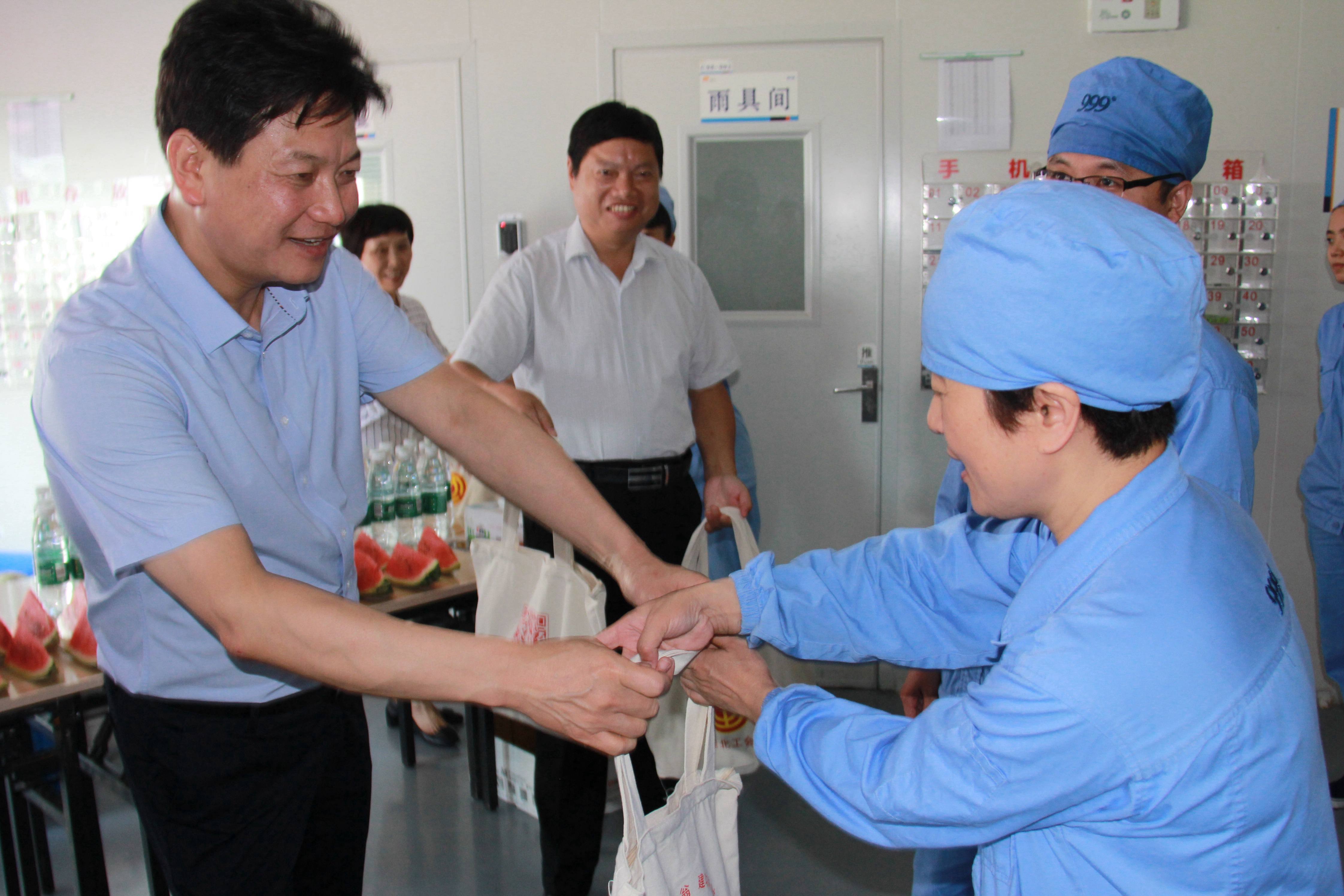 7月31日上午,淮北市委副書記李明,市人大常委會(huì)副主任、市總工會(huì)主席李曉光一行,來到安徽華潤金蟾藥業(yè)股份有限公司,開展“暑期送清涼”慰問活動(dòng),慰問在高溫下堅(jiān)守生產(chǎn)崗位的一線職工。