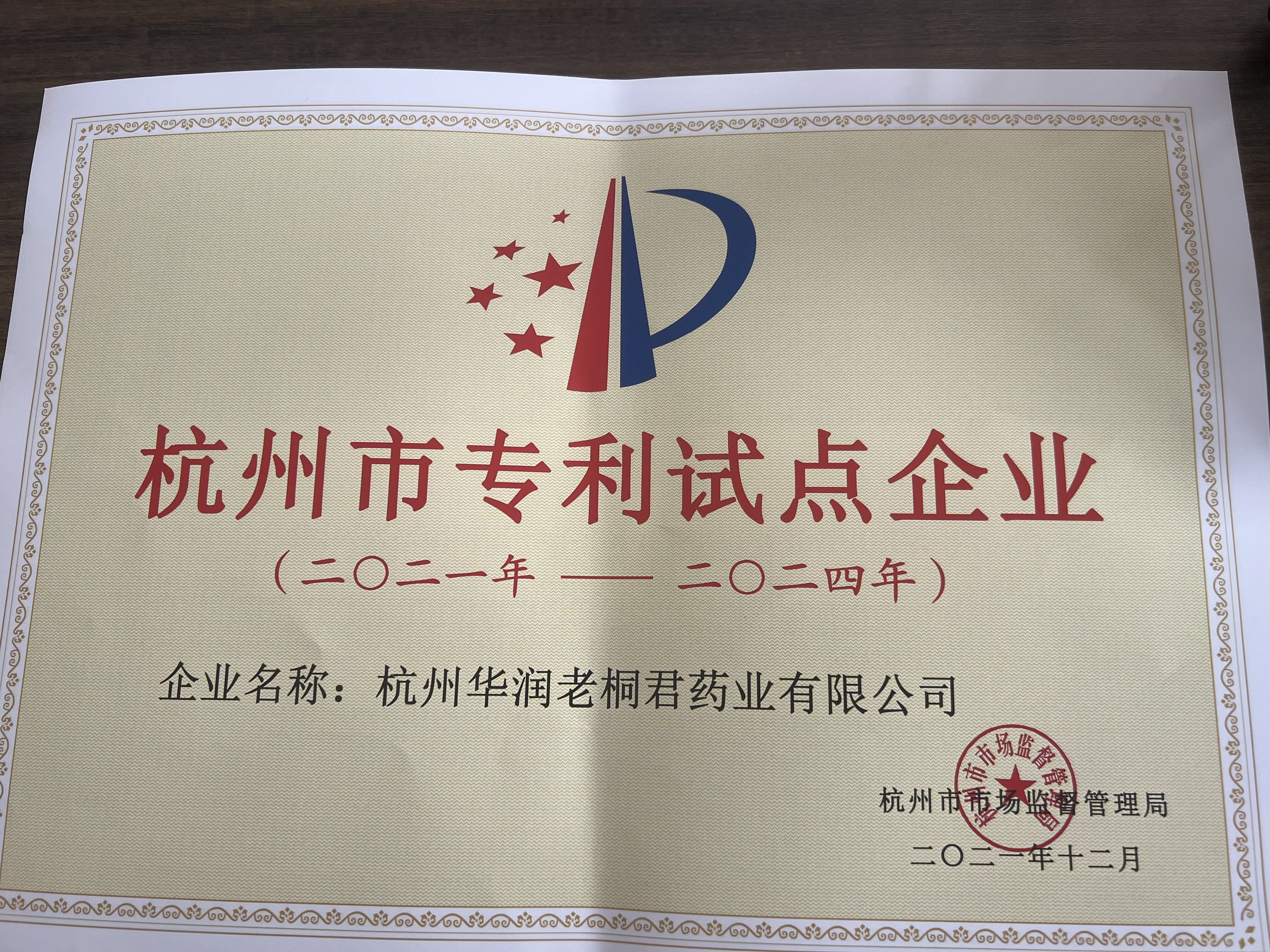 華潤老桐君獲評“杭州市專利試點(diǎn)企業(yè)”