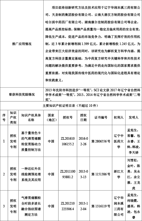 遼寧中醫(yī)藥大學擬推薦的教育部2018年度高等學??茖W研究優(yōu)秀成果獎(科學技術(shù))項目公示