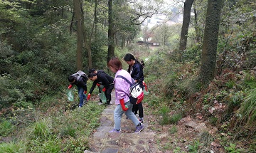 在大眾山登山步道,團(tuán)員們分隊行動,分工合作,帶著夾子、袋子等工具撿拾步道旁、草叢中的煙頭、飲料瓶、塑料袋等垃圾,團(tuán)員們青春飛揚(yáng)的身影成為大眾山一道美麗的風(fēng)景。經(jīng)過兩個小時的奮戰(zhàn),每個人手中都已“碩果累累”,共撿拾了近10袋垃圾,并統(tǒng)一送到環(huán)衛(wèi)回收站集中處理。