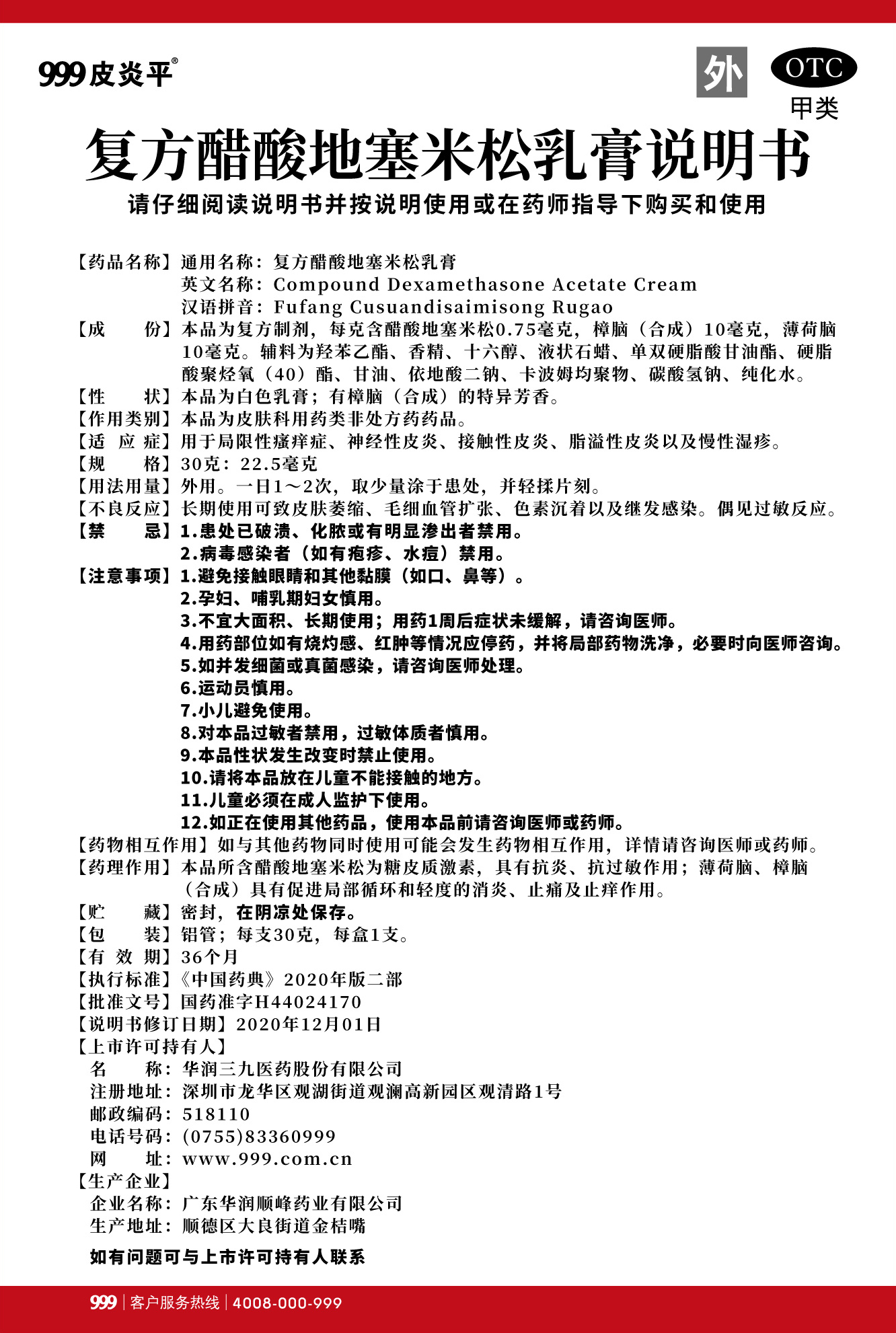 (999皮炎平)復(fù)方醋酸地塞米松乳膏