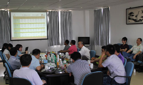 華潤三九技術(shù)總監(jiān)談英一行四人以及分管營銷工作的常務副總邱華偉一行五人分別與14日中午和15日上午先行到達神鹿,聽取我司高管丁總、張總關于 企業(yè)和產(chǎn)品基本情況的匯報,并視察了廠區(qū)外圍、質(zhì)量管理部、藥材倉庫和進口生產(chǎn)線。