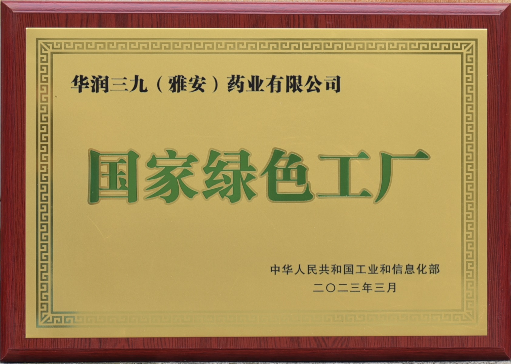 華潤三九(雅安)獲評(píng)2022年度國家綠色工廠